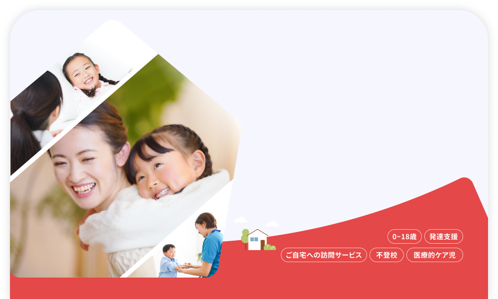 医療的ケアや日常生活の援助が必要なお子さま、発達の遅れやコミュニケーション、ひきこもり、不登校(園)等に関するお悩みをお持ちのお子さまとその保護者さまが対象です。