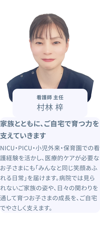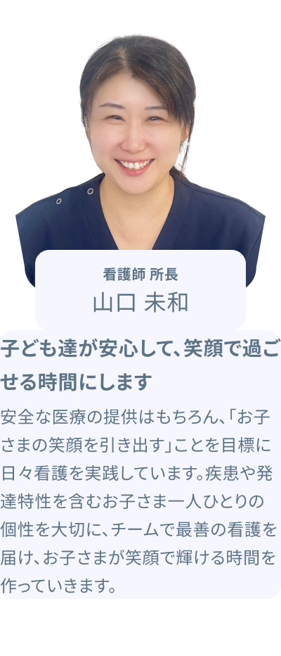 主治医の指示のもと、お子さまの状態に合わせた必要な支援を提供します。